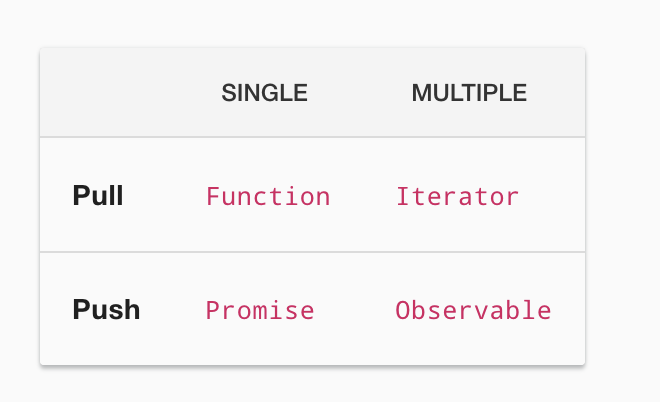 Это мне напомнило другую матрицу, объясняющую что такое observables в rxjs: