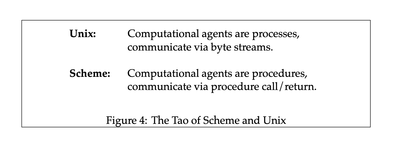 И там (раздел The Tao of Scheme and Unix2) подаётся интересная мысль и интересная находка для scheme-оболочки: